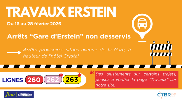 A compter du mercredi 20 août 2025 l'arrêt GEUDERTHEIM " Mairie " ( sens : BRUMATH => HOENHEIM ) est déplacé de 150 mètres en direction de BIETLENHEIM en raison de travaux au niveau de l'école élémentaire.