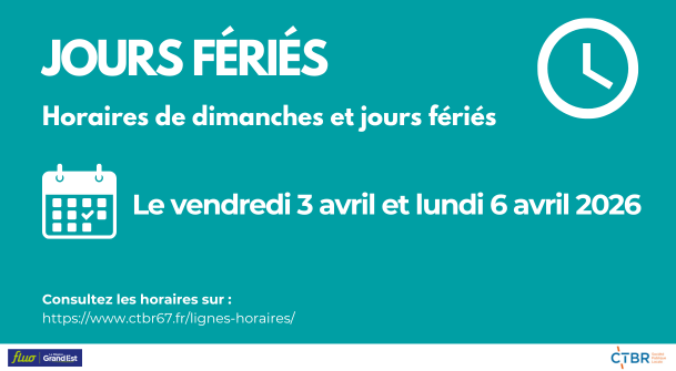 Les 3 & 6 avril 2026, les cars circuleront selon les horaires "dimanches et jours fériés" (période bleue)