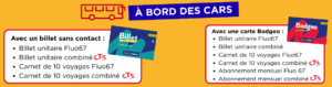 👉 Si vous combinez un trajet sur les deux réseaux Fluo67 et CTS, pensez au titre combiné !