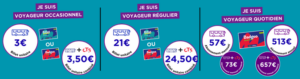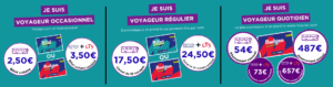 – Voyageur quotidien → si vous vous déplacer tous les jours ou plusieurs fois par semaine, les abonnements sont la solution la plus avantageuse (dès 3 allers-retours par semaine).