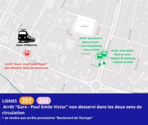 ⚠️ Attention : ❌pour les lignes 220 et 404, l’arrêt Gare aux marchandises ne sera pas desservi dans le sens « Vers Strasbourg”❌